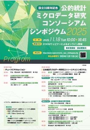 本シンポジウムは、公的統計ミクロデータを学術研究に利用する大学や研究所、